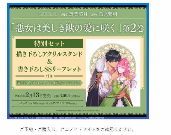 下記店舗で『悪女は美しき獣の愛に咲く』第2巻